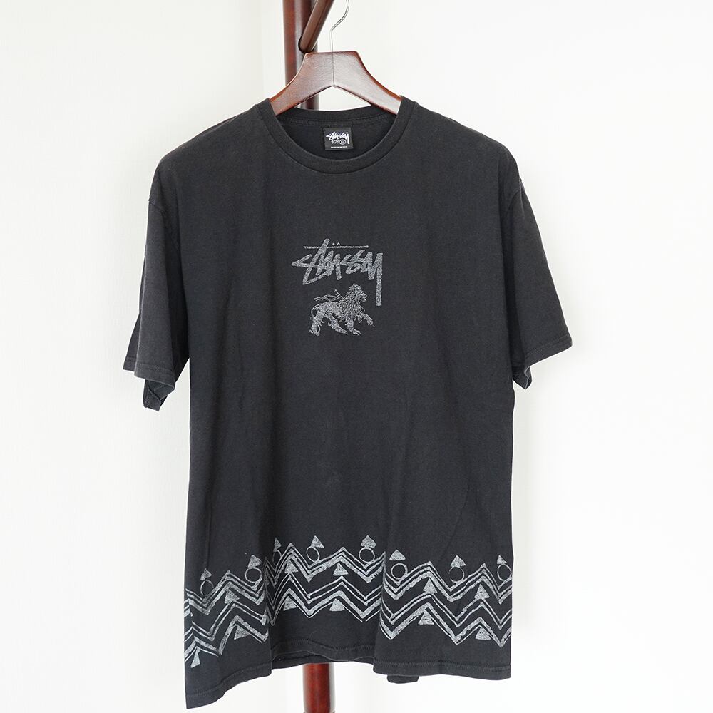 Stussy ステューシー/XL・ストックロゴ・ライオン・民族柄/ブラック/Tシャツ(STS0092)