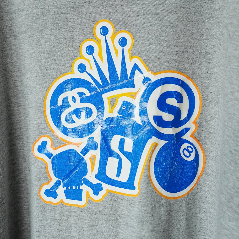 90s Old Stussy ステューシー/紺タグ・Made in USA・SSリンク・8ボール/グレー/Tシャツ(STS0163)