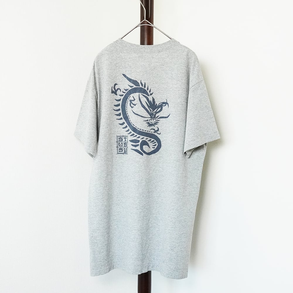 90s Old Stussy ステューシー/紺タグ・Made in USA・ドラゴン・龍/グレー/Tシャツ(STS0684)